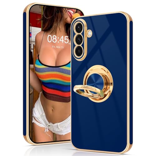 Tveinan for Samsung Galaxy A36 5G Case with 360° Rotation Ring Holder Stand, Slim Soft Shockproof Cover with Magnetic Car Holder Flexible TPU Kickstand Phone Case for Samsung A36 5G - Navy Blue
