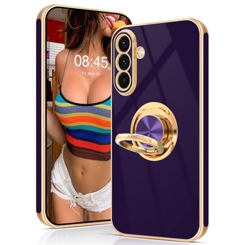 Tveinan for Samsung Galaxy A36 5G Case with 360° Rotation Ring Holder Stand, Slim Soft Shockproof Cover with Magnetic Car Holder Flexible TPU Kickstand Phone Case for Samsung A36 - Deep purple