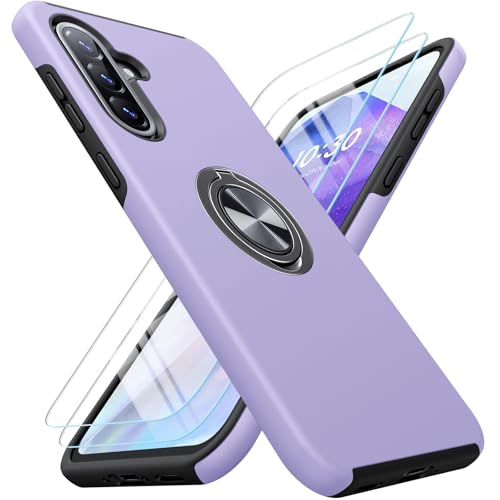 AOUIA for Samsung A36 5G Case with 2-Pack Tempered Glass Screen Protectors, 3-in-1 Set Cover, 360°Rotating Ring Stand, Military Protection Shockproof Phone Case for Samsung Galaxy A36, Purple