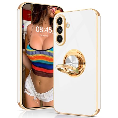 Tveinan for Samsung Galaxy A36 5G Case with 360° Rotation Ring Holder Stand, Slim Soft Shockproof Cover with Magnetic Car Holder Flexible TPU Kickstand Phone Case for Samsung A36 5G - White