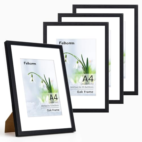 A4 Black Photo Frames with Mount for 8x6(15x20cm), 4pack Solid Wood A4 Picture Frames for Wall or Tabletop, Premium A4 Black Frame with Safe Perspex