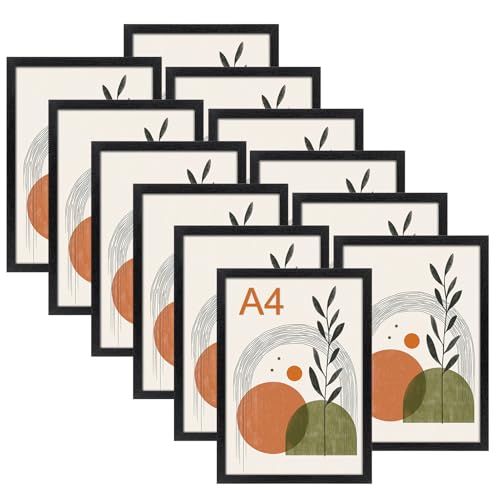 Ditwis A4 Frame Black Set of 12, Multiple Picture Frames for Certificates, Documents, Artwork and Photos (21x29.7 cm), Wall or Desk Display