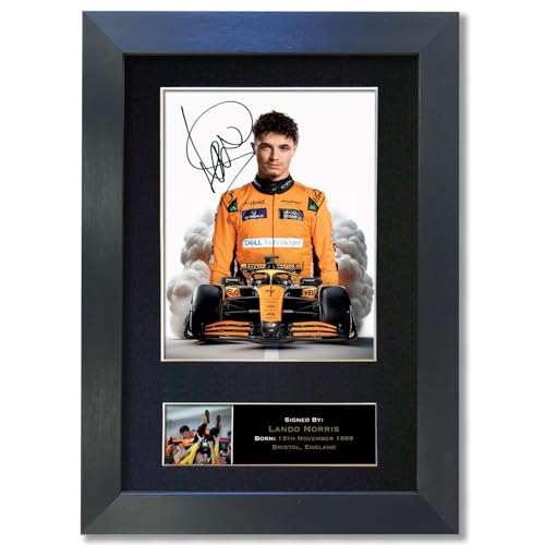 Lando Norris F1 Signed Reproduction Autograph Mounted Photo Print A4 Black Frame #867