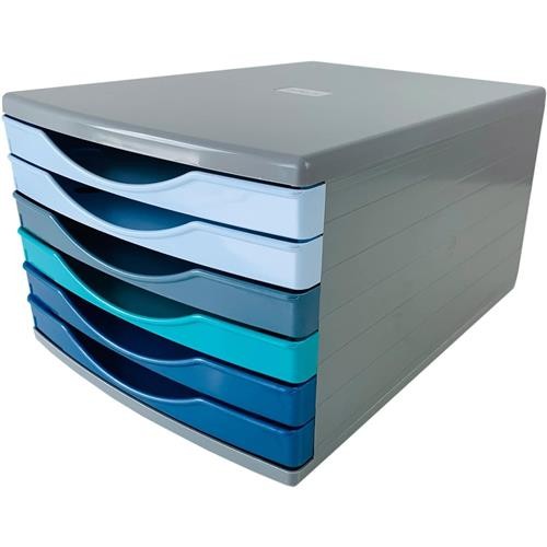 Deflecto Cool Breeze A4 Desktop Drawer Organiser 6 Drawers - 6 x 30mm Drawer Tower Unit Deep Blue and Aqua - CP146YTCB