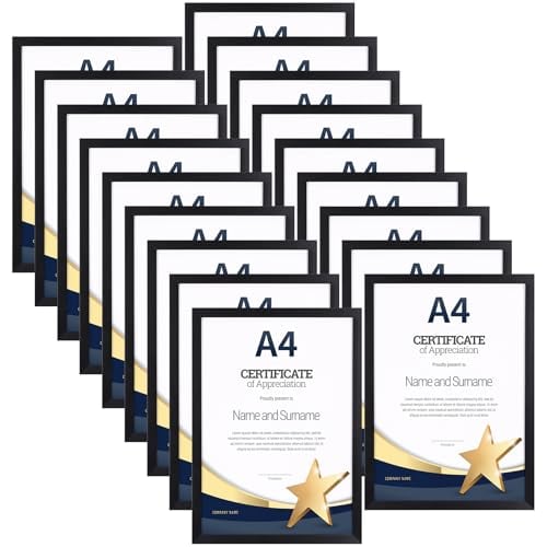 EYMPEU 18-Pack Black A4 Frames, Slim A4 Picture Frame for Displaying Certificates, Posters, Artwork on a Wall or Desktop, Elegant Design