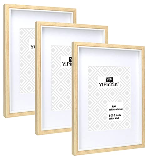 A4 Wood & White Two Tone Photo Frames With Mount for A5 (6 x 8'') set of 3, Stylish A5 Wood Boxed Inlay Frame 3Pack, A4 Photo frames with mount for 6 x 8'' frame for Tabletop and Wall hanging.