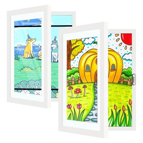 Yarryuter 2 Pack Kids Art Frames Kids Artwork Frames Changeable Artwork Display Storage Frames A4 Picture Frames Front-Opening, Frames