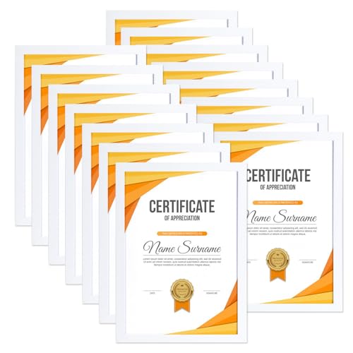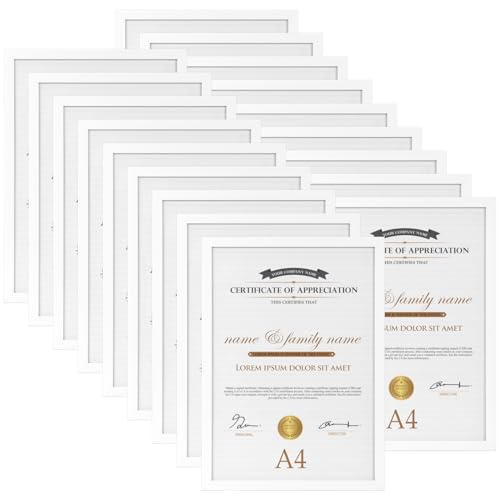 HORLIMER A4 Frames Pack of 15, White A4 Picture Frame for Displaying Certificates, Posters, Prints, and Documents on Wall or Desk Display