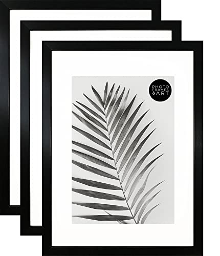 pf+a REAL GLASS Set of 3 A3 For A4 Photo Frames - Pack of 3 Black Picture Frames For A4 / A3 For A4 Black Frames With Mount