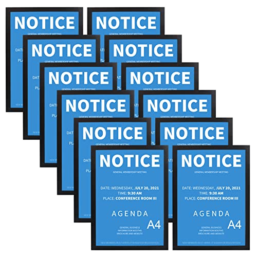 RLAVBL A4 Picture Frames Set of 12, Black Magnetic Photo Frame with Self Adhesive Backing for Window, Tile Wall, Fridge, and Door - Perfect for Ads, Notices, Licenses, Prints, and Certificates
