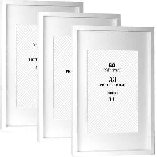 Szyeequoo A3 Picture Frame,A3 Frame with Clear Plexiglass,A3 photo frame Matted to A4 picture frames,Wall Hangng A3 Frames,Horizontal & Vertical Frame,29.7 * 42CM Poster Frame,A3 picture frame white