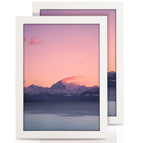 Zemiu 2Pack Premium A4 Picture Frames, Wooden Photo Frame 29.7x21cm-12x8inches with Perspex/Hanging Hooks,for Wall/Desk Pictures Print Display-White