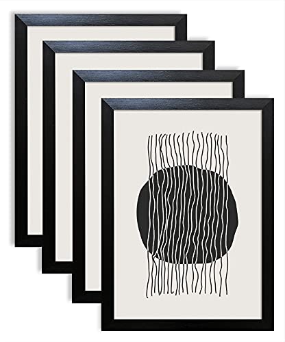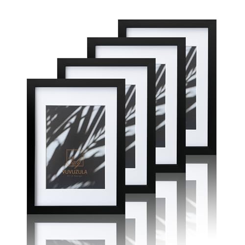 VUVUZULA A4 Frame Black Photo Frames A4 Picture Frames with Mount for A5 Photo Certificate Frame A4 Set of 4 with Real Glass