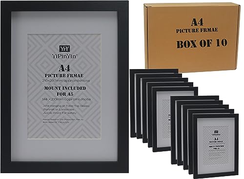 Black A4(21x29.7cm Picture Frame with Mount for A5 set of 10, A4 Document Frames In Clear Acrylic Sheet,A4 Certificate Photo Frame 5Pack, A4 Frame for Desktop and Wall Mounted Hook