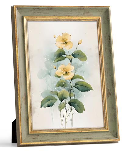 Afuly A4 Photo Frames Vintage Antique Elagent Green Gold Picture Frame 21x29.7cm Wall Frame with Mount Home Desk Decor Display Gifts for Mom Grandma Women Famliy Friends