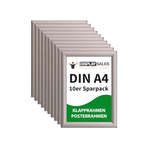 DISPLAY SALES A4 Snap Frames Pack of 10 | 25 mm Silver Aluminium Clip Frames | Front Opening Poster Frames with Anti-Glare Cover | Wall Mounted Display Frames for Office, Shop & Restaurant