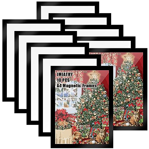 JMIATRY 10 Pcs A4 Magnetic Frames, Self Adhesive A4 Magnetic Picture Frame, Black Display Frames Magnetic for Wall, Door, Refrigerator and Cupboard Display Frame
