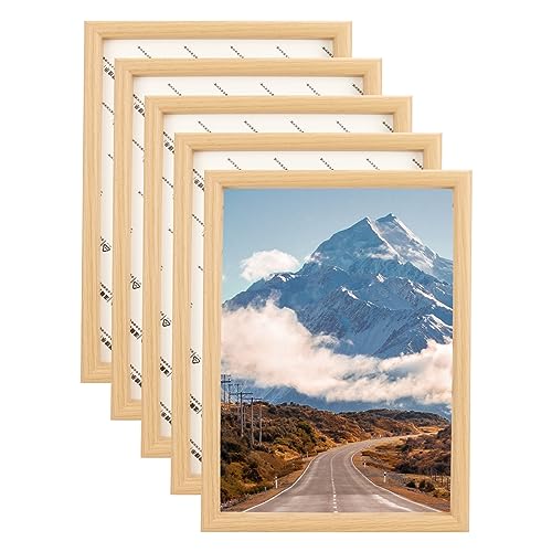 JMIATRY 5 Pcs Wooden A4 Photo Frames, Wall Mount A4 Picture Frame with Clear Perspex Glass Front, Wood Frame for Photo/Picture Display, 31.5x23cm