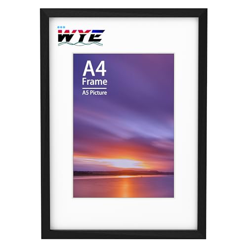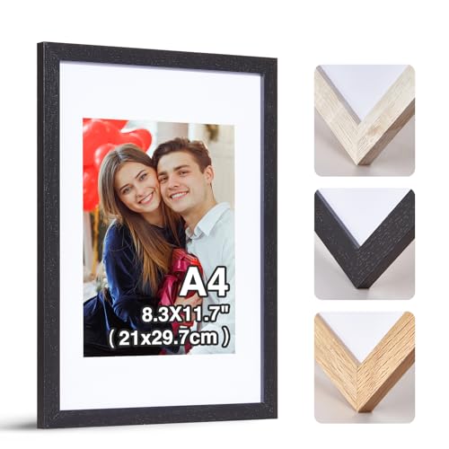 A4 Frame, 21x30 cm Wooden A4 Photo Frames, A4 Picture Frames with Mount, Black Picture Frames for Print, Certificate Frame for Wall Mount, For Table Decoration