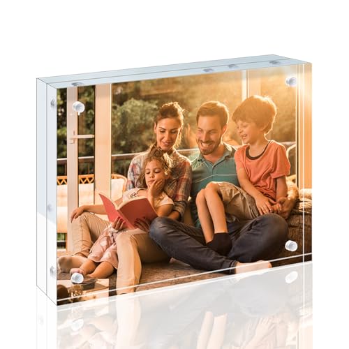EGOFINE A4 Acrylic Frames 1 Pack, 20mm Thicker Frameless Clear Picture Frames, Double Sided Magnetic Picture Frames, Free Standing Desktop Display