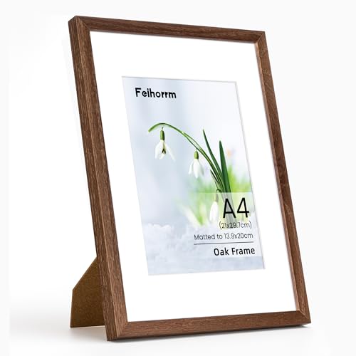 A4 Frame, Solid Oak Wood A4 (21x 30 cm) Certificates Documents Photo Frames, A4 Picture Frame with Mount for A5 Prints, A4 Frames with Tempered Glass for Vertical & Horizontal Wall Hanging