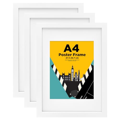 A4 Photo Frames - 3 Pack White Poster Frame 20x28.5cm White Picture Frames for Tabletop Freestanding & Wall Mounting