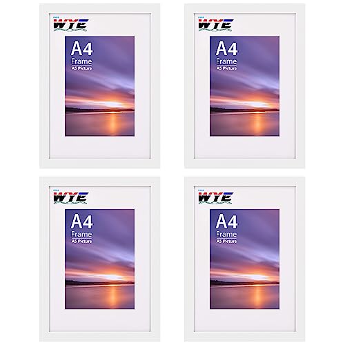 EGOFINE A4 Frames White Set of 4 - Made of Solid Wood A4 Picture Frames, A4 Photo Frames with A5 Mat, A4 Poster Frame with Plexiglass for Table Top and Wall Mounting