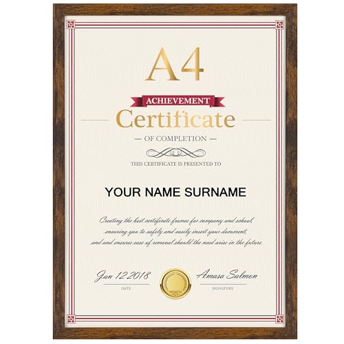 Giftgarden Brown A4 Picture Frame, Rustic A4 Photo Frames Suitable for Desk or Wall Display of Certificates, Posters, and Artwork - Single