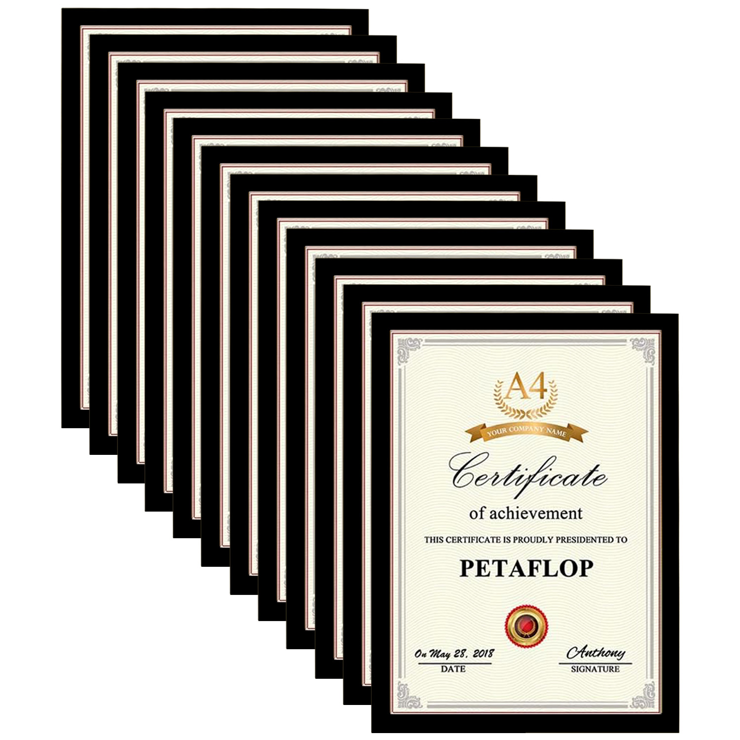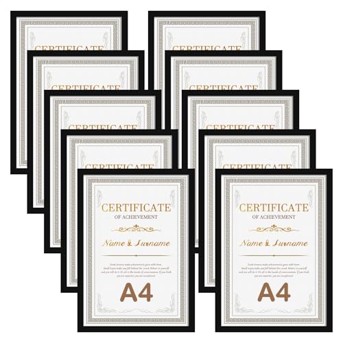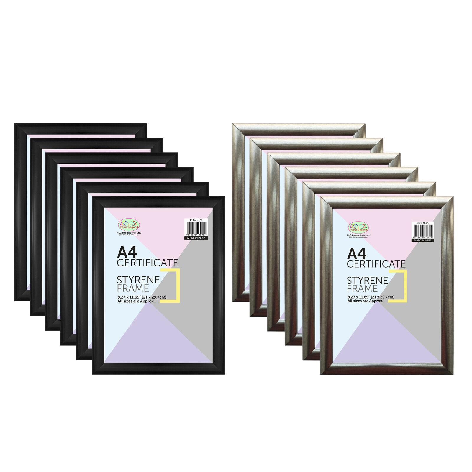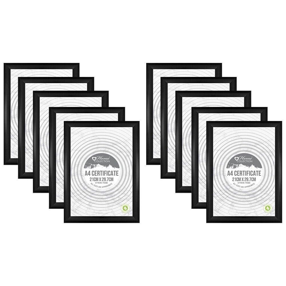 A4 Black Photo Frames Pack of 10, Styrene Picture Certificate Frames Wall Decor