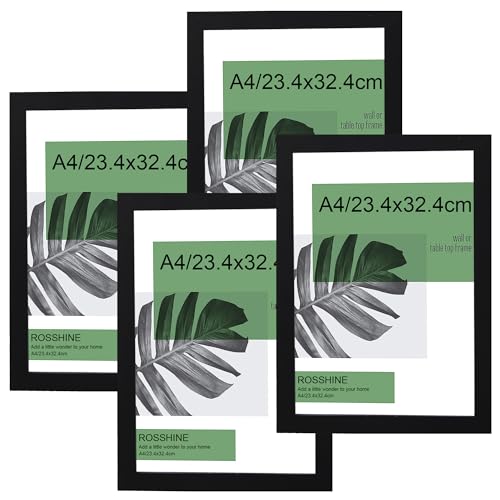 4 Pack A4 Picture Frame, A4 Black Photo Frames 21 X 29,7 cm for Table Top and Wall Mounting