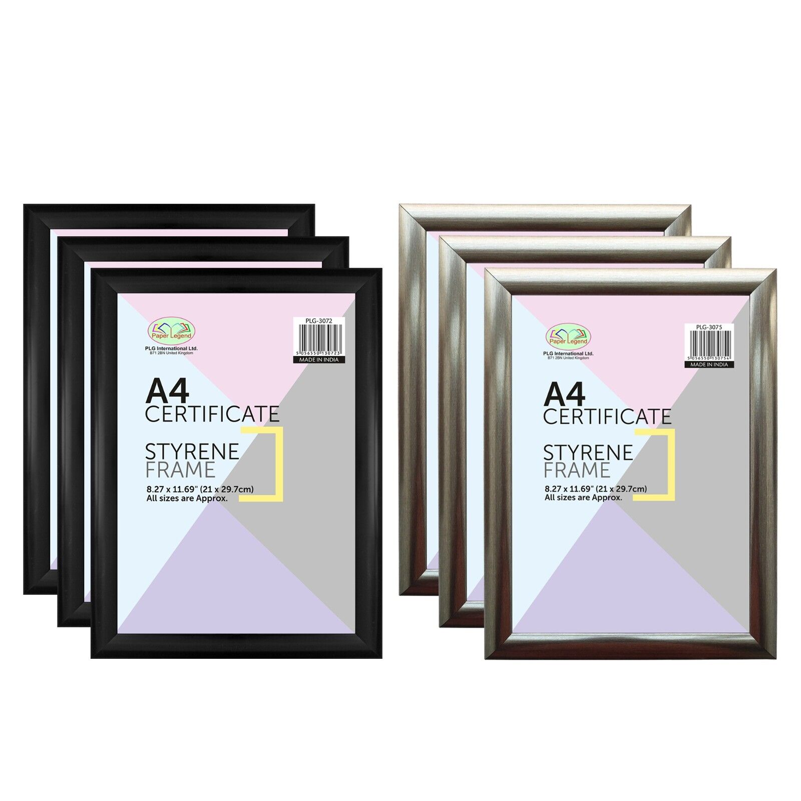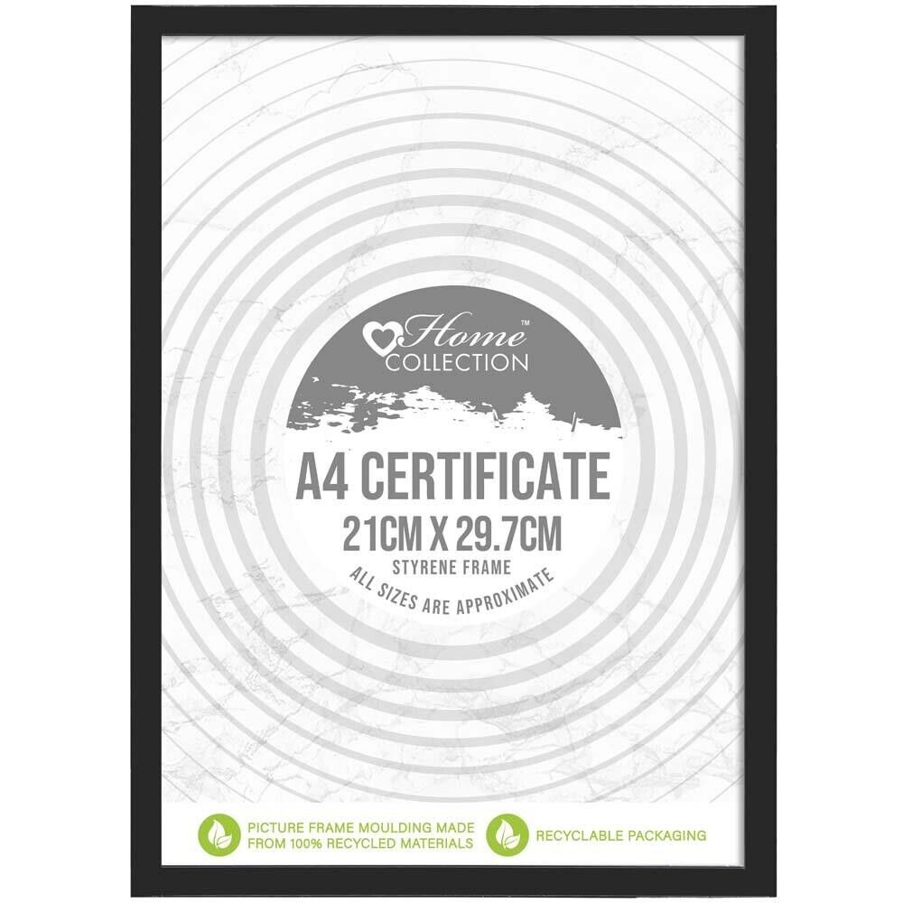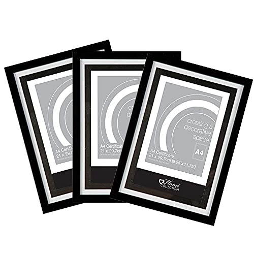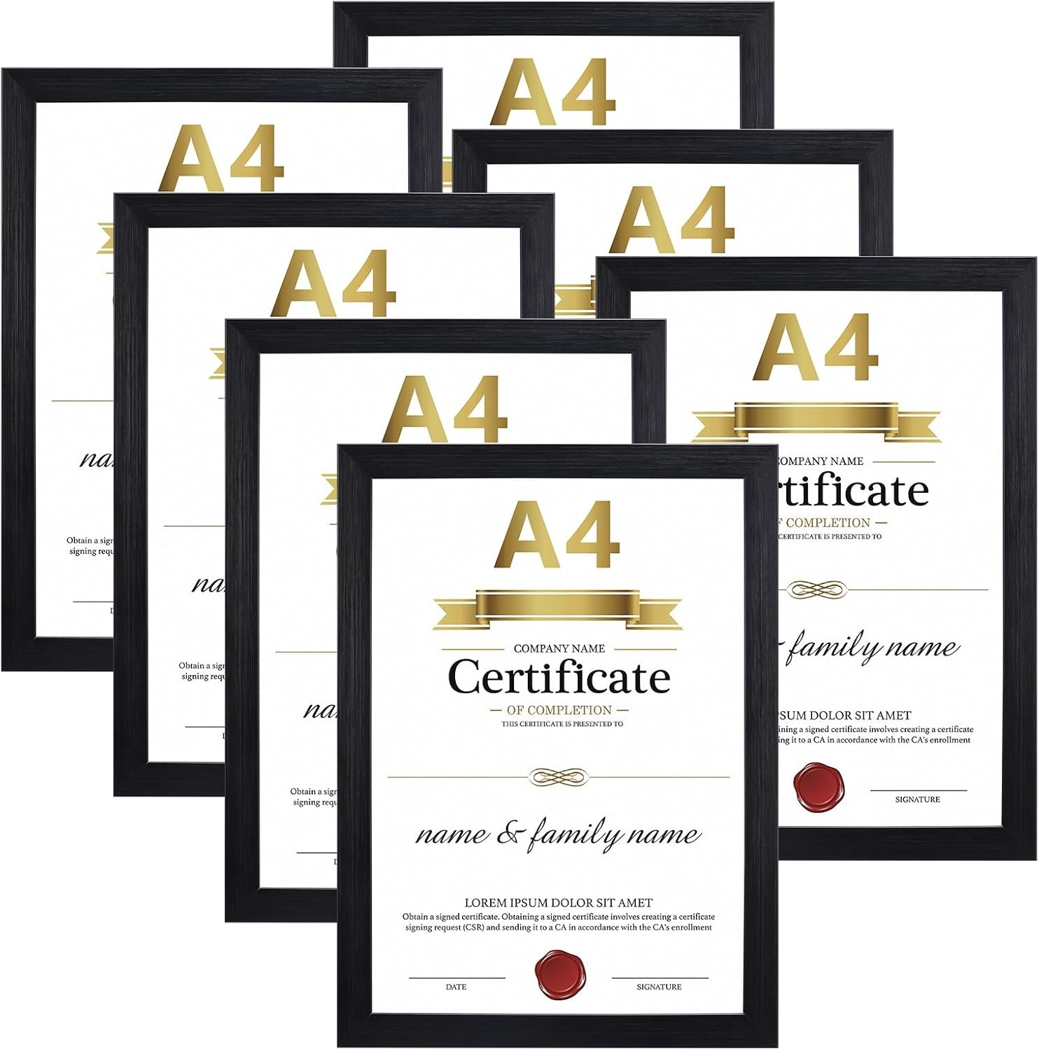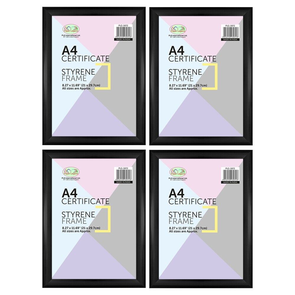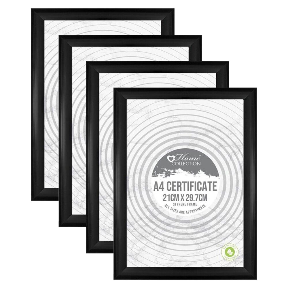 (Pack of 4) A4 Black Photo Frames With Border Certificate Picture Home Art Decor