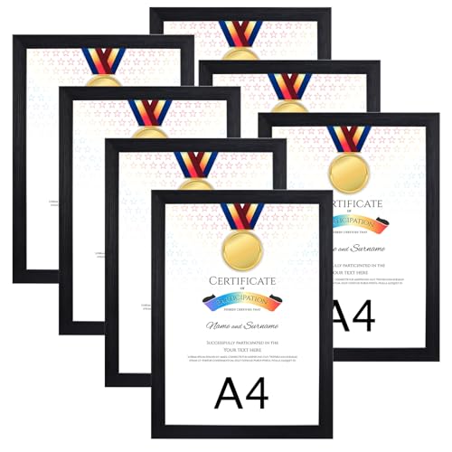 Giftgarden Black A4 Picture Frame A4 Photo Frames for Desk or Wall Display of Documents, Certificates, Posters, and Art, Pack of 7