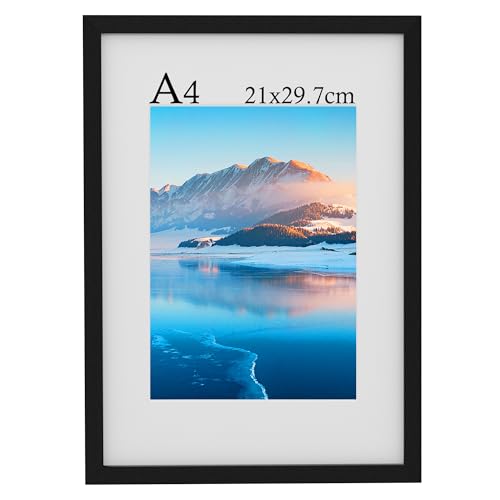 A4 Frame, 21x30 cm Wooden A4 Photo Frames, A4 Picture Frames with Mount, Black Picture Frames for Print, Certificate Frame for Wall Mount, For Table Decoration