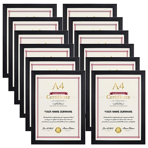Giftgarden 12 Pack A4 photo Frames, Black A4 Picture Frame Certificate Frames for Wall Hanging and Tabletop Display