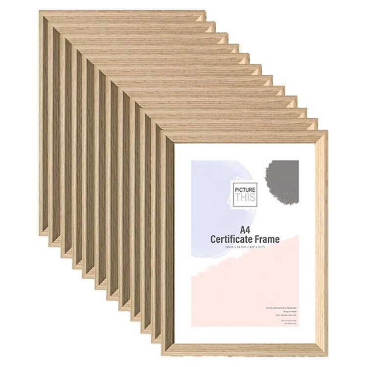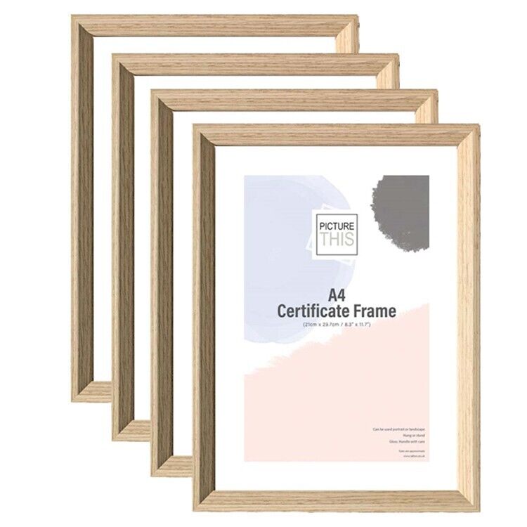 4 x A4 Certificate Photo Frames Wood Effect Glass Picture Holder for Home Decor