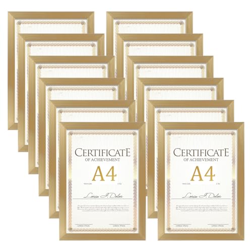 Giftgarden 12 Pack A4 photo Frames, Gold A4 Picture Frame Certificate Frames for Wall Hanging and Tabletop Display