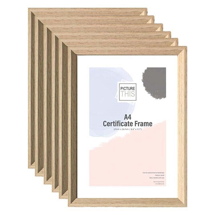 6 x A4 Certificate Photo Frames Glass Wooden Wall Hanging or Tabletop Display