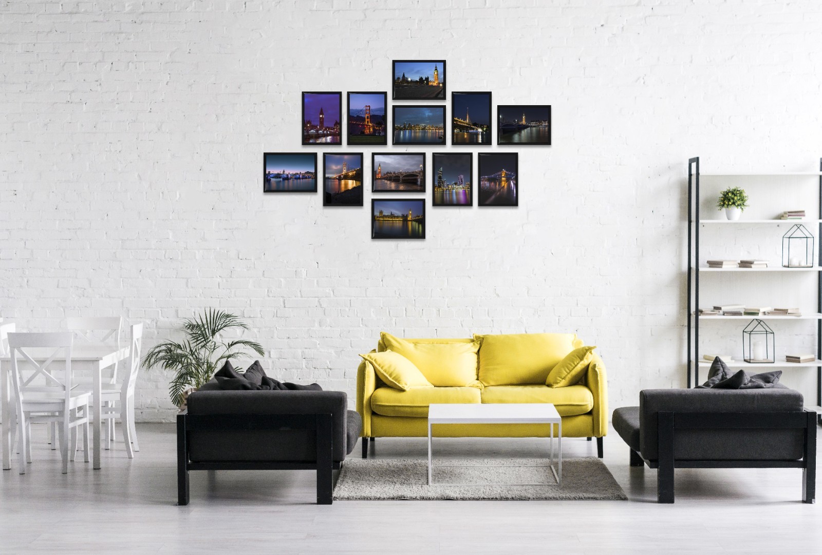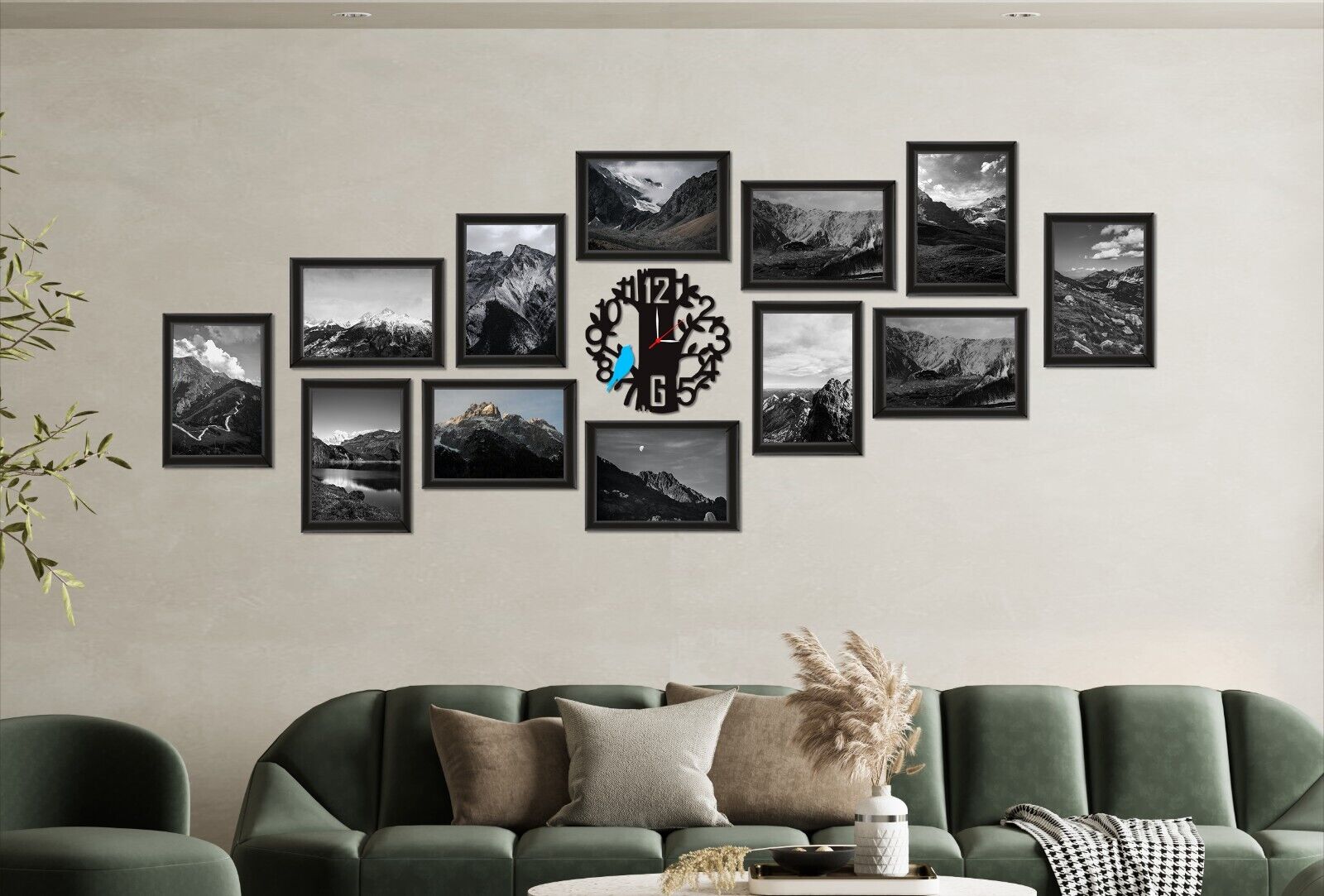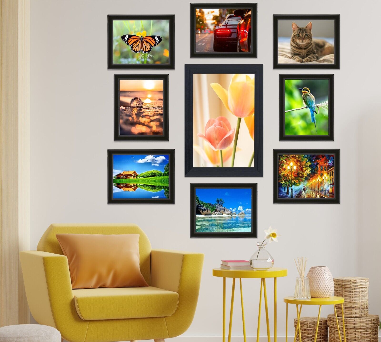 Pack of 9 Picture Frameset 4"x6" & A4 Black Photo Frames for Wall Art Display