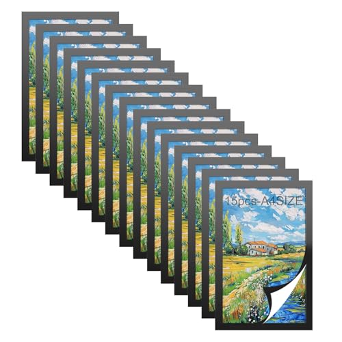 Woobroo 15 Pack A4 Magnetic Photo Frames, PVC Certificate Frames for Displaying Documents, Posters, Prints and Pictures on Wall or Tabletop