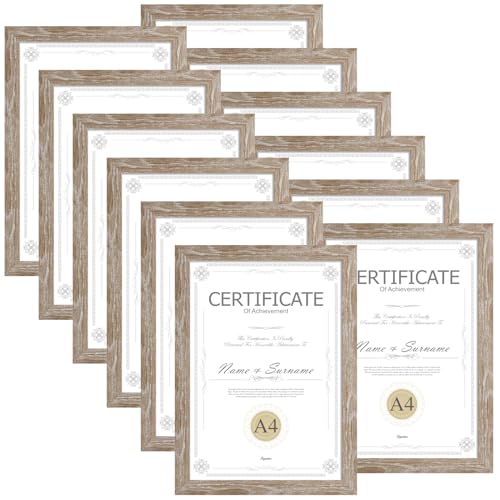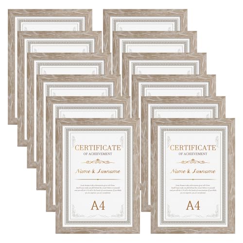 Giftgarden 12 Pack A4 Picture Frame Distressed Beige White, Multi Rustic Grain A4 Photo Frames Certificate Frames for Wall Hanging and Tabletop Display