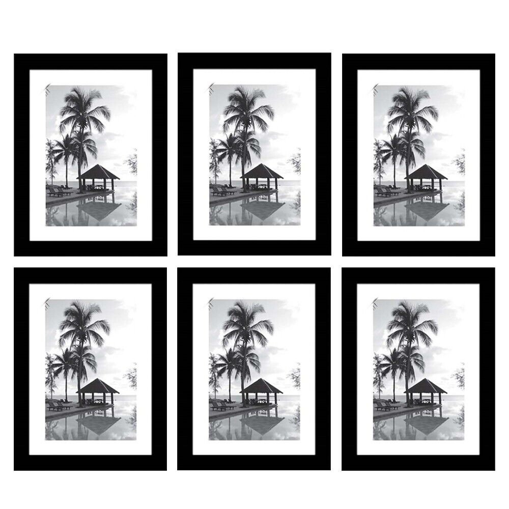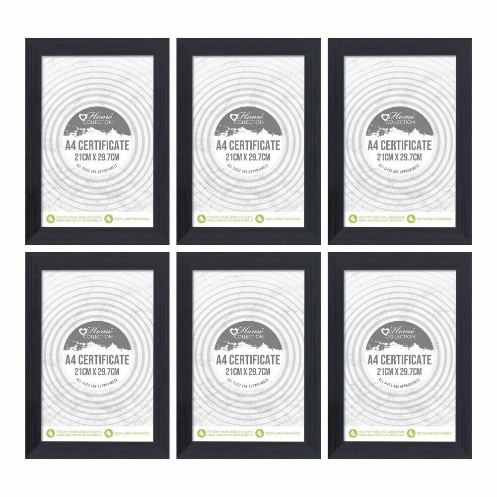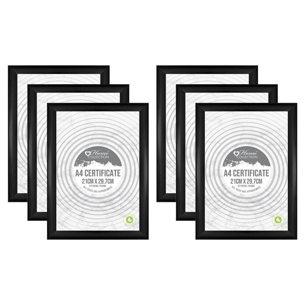 (Pack of 6) Glass A4 Black Photo Frames Wall Mount Back Stand Certificate Degree