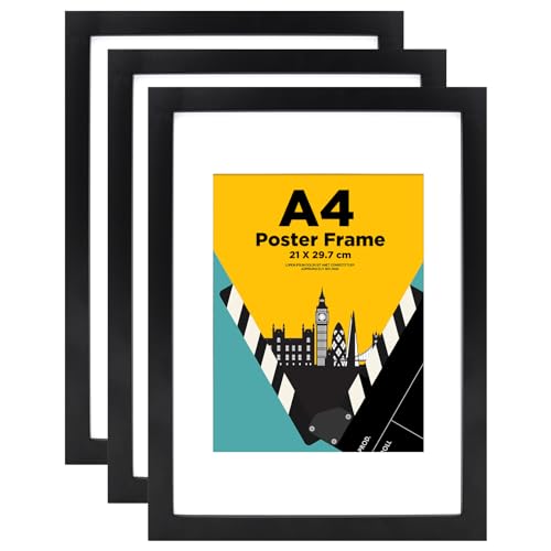 A4 Photo Frames - 3 Pack Black Poster Frame 20x28.5cm Black Picture Frames for Tabletop Freestanding & Wall Mounting