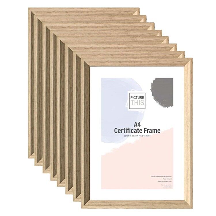 8 x A4 Certificate Photo Frames Glass Front Wooden Wall Hang Or Tabletop Decor