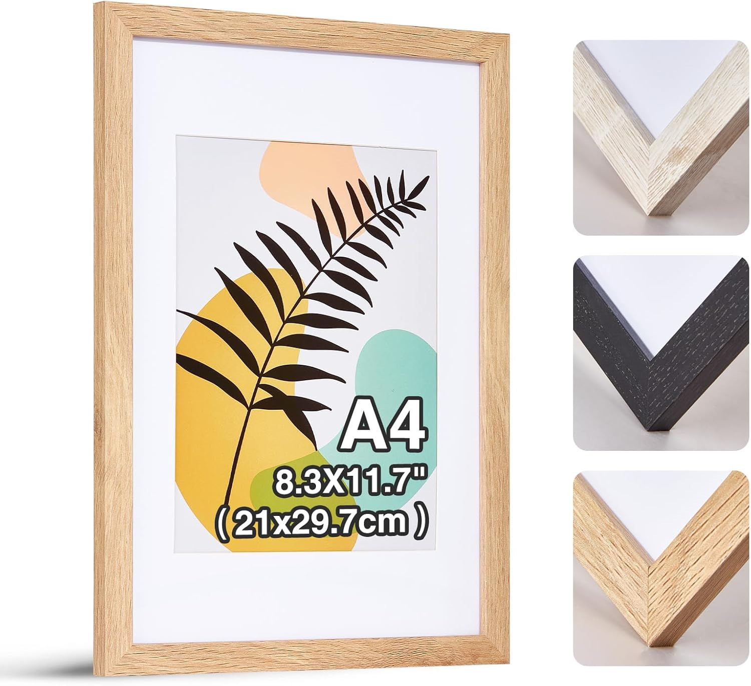 Natural Wood Effect A4 Photo Frames set of 3 with Mount for A5(6 x 8 ''),A4 Gallery Boxed Picture Frames With Mount for A5