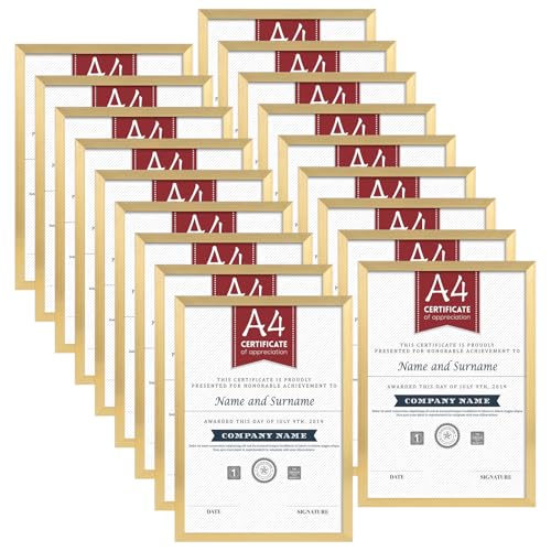 Hoikwo Multi A4 Photo Frames Set of 18, Gold A4 Picture Frame for Wall Hanging or Tabletop Display, Ideal for Certificates, Photos, Artwork, Poster, Document