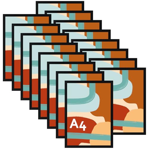 EXYGLO 12 Pack Black A4 Picture Frame Set, Versatile A4 Photo Frames - Ideal for Wall or Desk Display of Prints in Home and Office