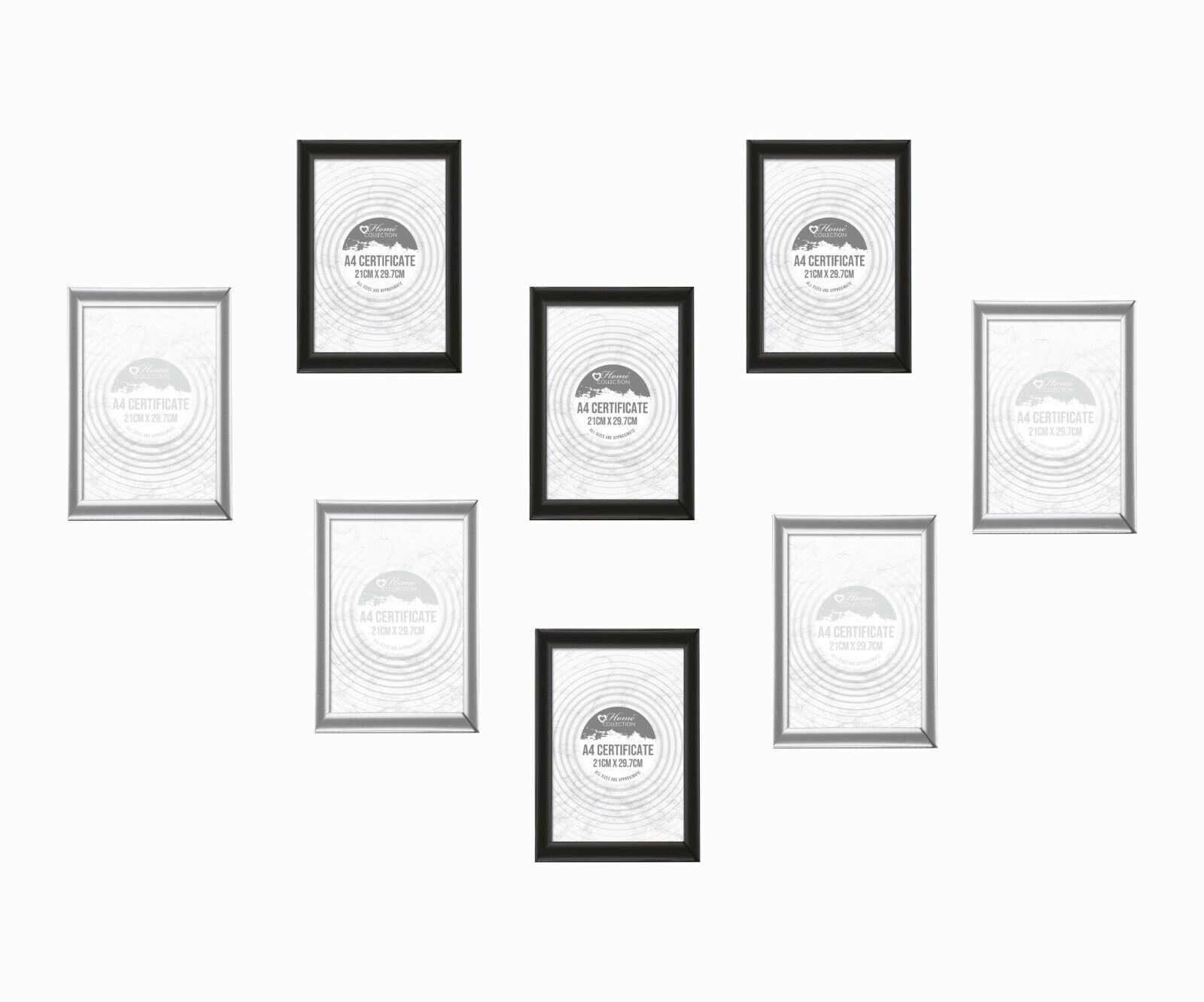 [Set of 8] A4 Certificate Photo Frames Wall Mountable Home Decor- Black & Silver