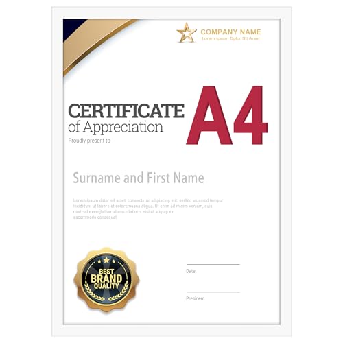 Giftgarden White A4 Picture Frame, Versatile A4 Photo Frames Suitable for Desk or Wall Display of Certificates, Posters, Documents, and Artwork - Single