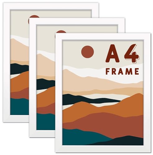 A4 Photo Frames - 3 Pack White Poster Frame 20x28.5cm White Picture Frames for Tabletop Freestanding & Wall Mounting