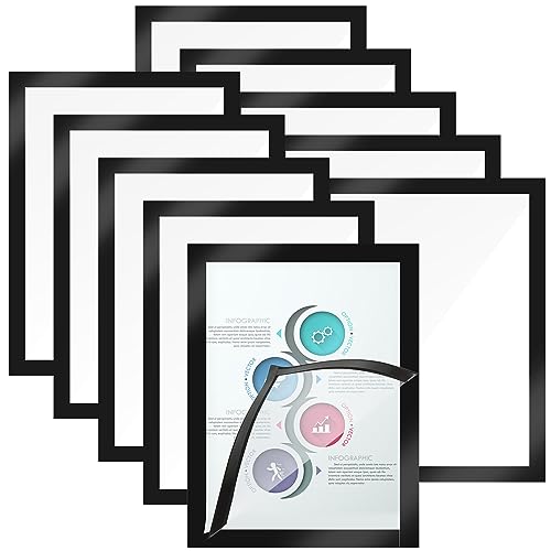 LOLYSIC 10Pcs A4 Photo Magnetic Frames, Self Adhesive Magnetic Picture Frames, Black A4 Magnetic Photo Picture Display Frames for Photos, Document, Notices, Certificate, Poster, 21x29.7cm, Black